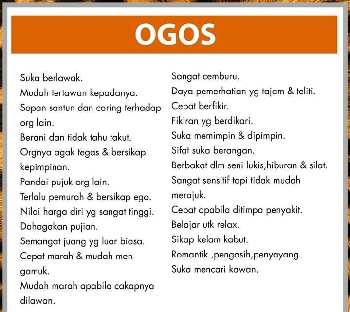 Personaliti mengikut bulan kelahiran setiap manusia mempunyai personaliti yang unik dan berbeza. Kuat semangat dan bermotivasi tinggi. Kekerasan hati & degil, kuat semangat & bermotivasi tinggi, pemikiran yg tajam, mudah marah apabila tidak dikawal, pandai menarik hati org lain & menarik perhatian, perasaan yg amat mendalam, cantik dr segi mental & fizikal, tidak perlu dimotivasikan, tetap pendirian tetapi mudah dipengaruhi oleh org lain, mudah dipujuk, bersikap sistematik (otak. Fadzilah kamsah selama 25 tahun tentang sikap dan perwatakan seseorang mengikut bulan kelahiran mereka. Oleh itu kali ini ialah mengetahui rahsia sifat dan peribadi seseorang berdasarkan tarikh bulan kelahirannya seperti di bawah ini.